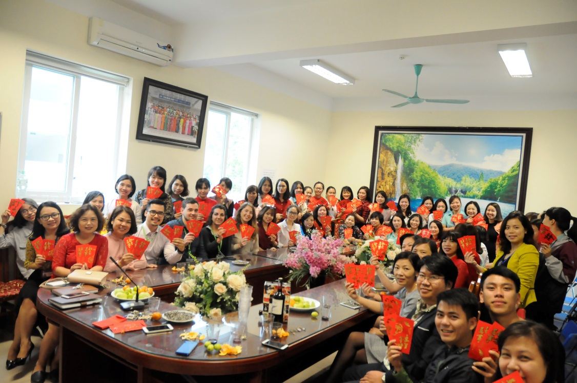 Tục Lì xì mừng Xuân, cùng chúc nhau nhân dịp xuân mới cũng được các cô giáo thực hiện. Các bạn giáo viên nước ngoài cũng vui mừng phấn khởi khi được hòa vào không khí Tết cổ truyền của Việt Nam và của trường TH Đô Thị Việt hưng – nơi các bạn đang làm việc.