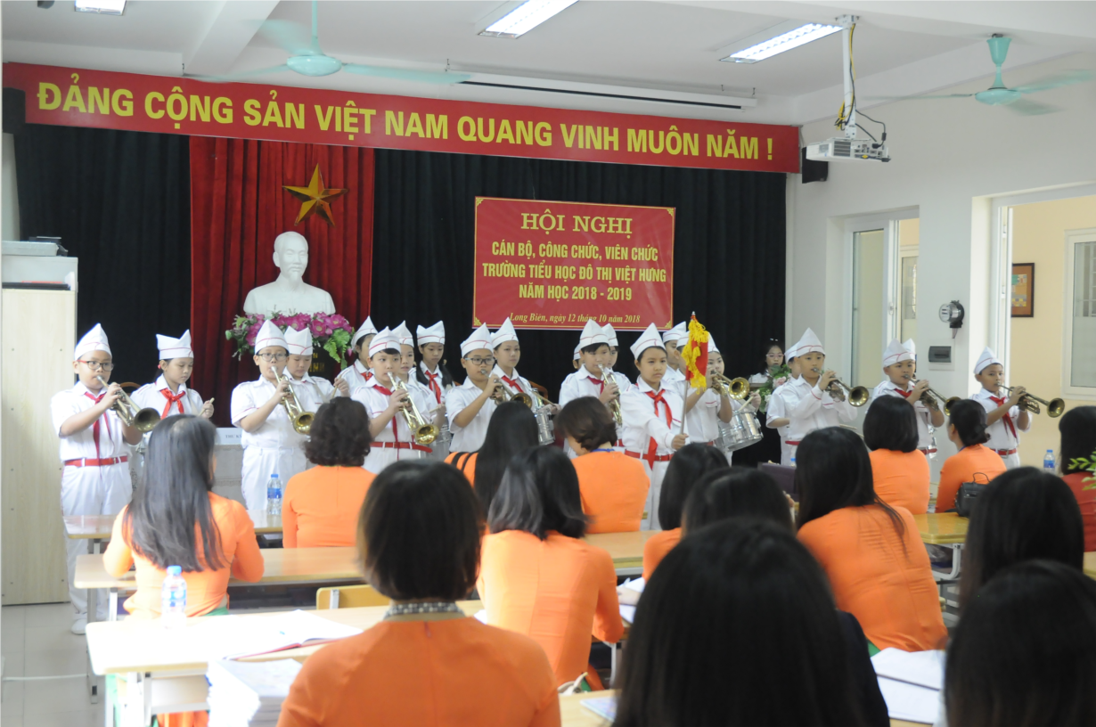 Thực hiện Hướng dẫn số 10/HD-LĐLĐ ngày 14/9/2018 của Liên đoàn Lao động quận Long Biên về việc tổ chức Hội nghị Cán bộ, công chức, viên chức và Hội nghị người lao động khối trường học năm học 2018 - 2019, trường Tiểu học Đô Thị Việt Hưng long trọng tổ chức Hội nghị cán bộ công nhân viên chức năm học 2018 - 2019. Đây là Hội nghị được tổ chức thường niên với sự có mặt của tập thể cán bộ, công chức, viên chức trong toàn trường.