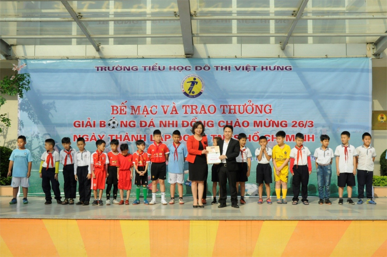 Một trong những hoạt động hướng tới kỉ niệm ngày thành lập Đoàn TNCS HCM 26/3 và kỉ niệm 15 năm ngày thành lập Quận Long Biên, từ ngày 05/3 đến ngày 04/4, trường Tiểu học Đô Thị Việt Hưng đã tổ chức Giải Bóng đá Nhi đồng truyền thống lần thứ IV năm học 2017 -2018. Đây là giải thi đấu thường niên dành cho các học sinh nam trong toàn trường, một sân chơi lành mạnh, bổ ích và là điều kiện để các em học sinh nâng cao thể chất, học hỏi, giao lưu lẫn nhau đồng thời rèn kĩ năng hợp tác, phối hợp đồng đội. Giải đấu năm nay thu hút được 29 đội bóng đại diện cho các lớp trong toàn trường tham gia. Các đội bóng được chia thành các bảng đấu, thi đấu vòng tròn một lượt, tính điểm chọn ra 2 đội đứng đầu mỗi bảng vào thi đấu bán kết và chung kết. Trận chung kết các khối diễn ra rất hào hứng, thu hút được sự quan tâm đông đảo của các em học sinh cũng như thầy cô giáo và cha mẹ học sinh. Đội bóng đá của các lớp: 1A6; 2A3; 3A4; 4A3; 5A3 đã chiến thắng giành vô địch giải đấu của mùa giải này.