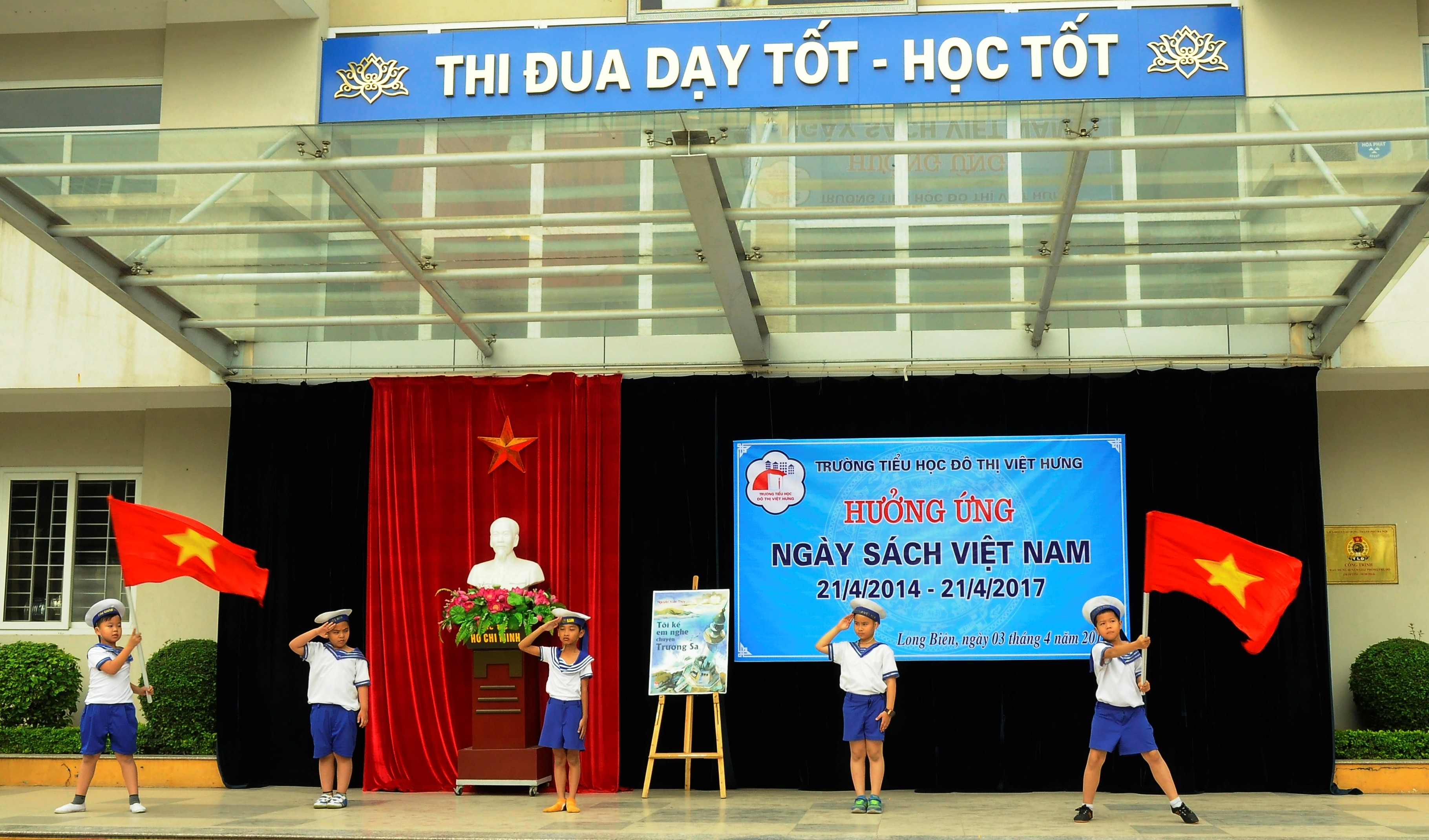 Dưới ánh nắng ban mai nhẹ nhàng của buổi sáng đầu tuần, như thường lệ các bạn nhỏ của Trường TH Đô Thị Việt Hưng lại háo hức với tiết sinh hoạt dưới cờ. Tiết chào cờ ngày 03/4/2017 còn mang một ý nghĩa đặc biệt hơn khi thầy và trò nhà trường thực hiện các hoạt động hưởng ứng Ngày sách Việt Nam 21/4 và chào đón các em học sinh Trường mầm non Đô Thị Việt Hưng sang tham quan, giao lưu tại trường.
