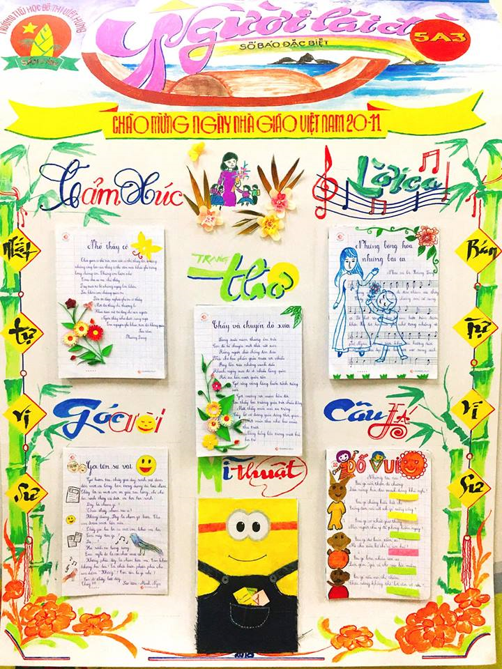 Đây là một hoạt động tập thể bổ ích cho học sinh và giáo viên sau những giờ học căng thẳng nhằm phát huy tối đa ý tưởng, khả năng sáng tạo của học sinh, tạo mối quan hệ đoàn kết, thân thiện giữa học sinh và giáo viên khối lớp 4-5. Với chủ đề chính là “Tôn sư trọng đạo”, “nhớ ơn thầy cô”, nội dung của tờ báo được các em học sinh thể hiện qua những bài xã luận, truyện ngắn, tản văn, thơ, bài hát, bức tranh… về thầy cô, mái trường và bè bạn. Những trang báo do các em học sinh và thầy cô giáo trong trường thực hiện với tiêu đề ý nghĩa, nhiều bài viết sinh động, súc tích chứa đựng biết báo tình cảm của các em học sinh đối với thầy cô. Điều này góp phần gây khó khăn không nhỏ cho quá trình lựa chọn, trao giải của Ban giám khảo: 1 giải Nhất dành cho lớp 5A3 và 3 giải Nhì thuộc về lớp 4A5, 5A2, 5A5.